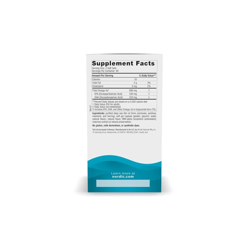 Nordic Naturals Suplemento de Omega 3 690mg, 180 geles blandos sabor limón