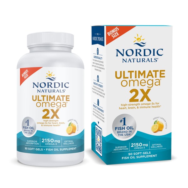 Nordic Naturals Ultimate Omega 2X, Lemon Flavor - 90 Soft Gels - 2150 mg Omega- High-Potency Omega-3 Fish Oil with EPA & DHA - Promotes Brain & Heart Health - Non-GMO - 45 Servings