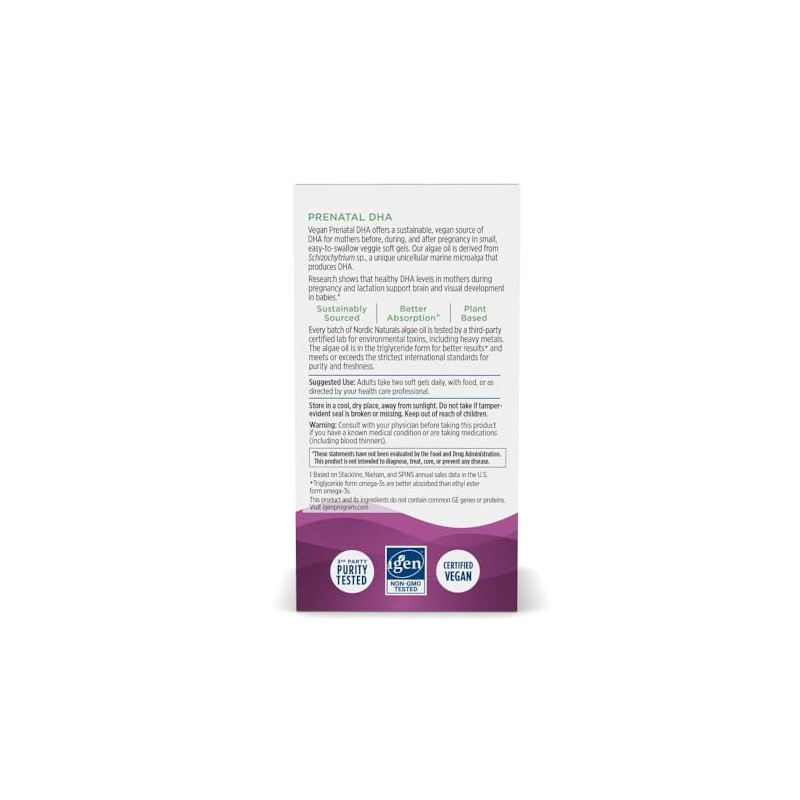 Nordic Naturals Vegan Prenatal DHA, Unflavored - 500 mg Plant-Based DHA - 60 Soft Gels - Supports Brain Development in Babies Healthy Pregnancy -...