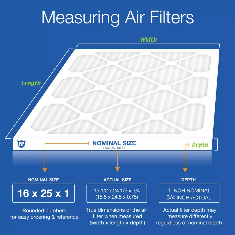 Important Note: Almost all air condition filters have a different Actual Size (the exact dimensions) than Nominal Size (the name) printed on the air conditioning filter. It is best to measure the exact size of your A/C filter and compare it to our Actual Size to be sure your HVAC replacement filter fits!