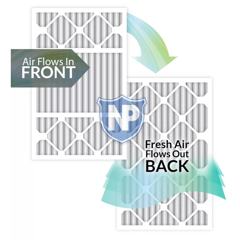 There is an airflow direction arrow on the side edge of your Nordic Pure pleated air filter. In the absence of the arrow for the pleated air filters the metal mesh is on the air exit side. For air filters with carbon added the carbon is on the air exit side. On the half inch air filters the smooth MERV material is on the air exit side.