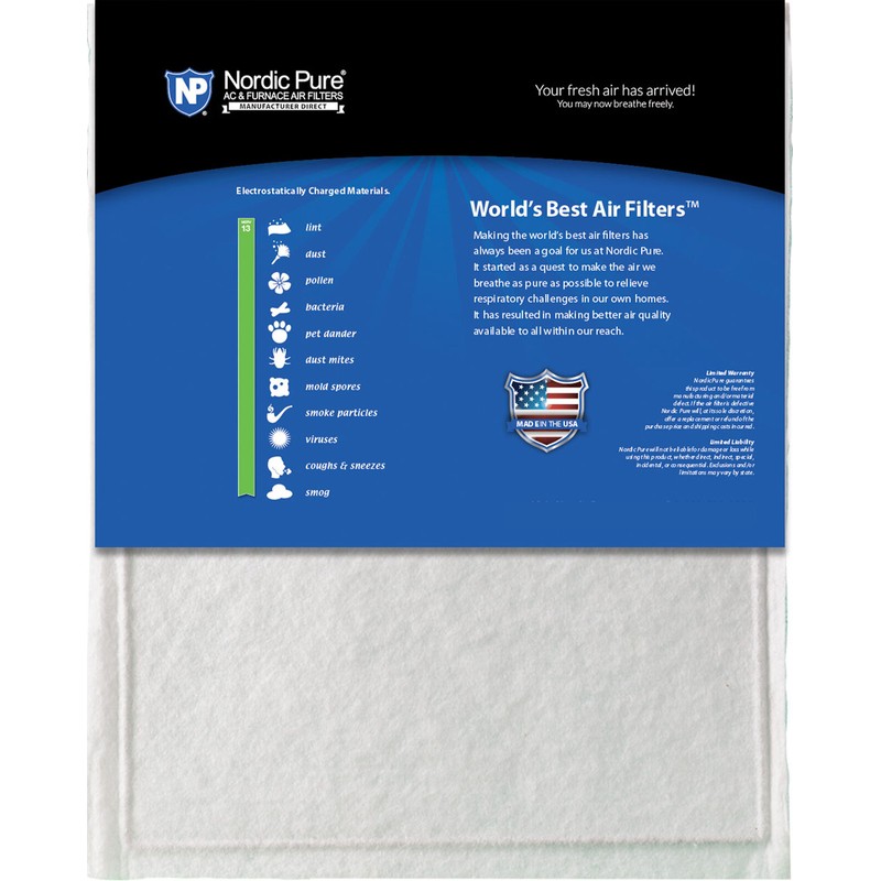 Nordic Pure Half Inch Ring Panel AC Furnace Air Filters consist of an internal frame bonded between flat layers of two different types of electrostatically charged HVAC furnace filter media. The first layer is a high-capacity, polyester filter material which acts as a pre-filter, capturing large airborne particles. The second, more efficient, layer is a MERV rated smooth poly-blend filter material. The electrostatic charge works as a magnet to draw in and trap smaller airborne particles. In combination, the half inch (1/2") double media air filters provide exceptional air filter capacity and remarkable efficiency.