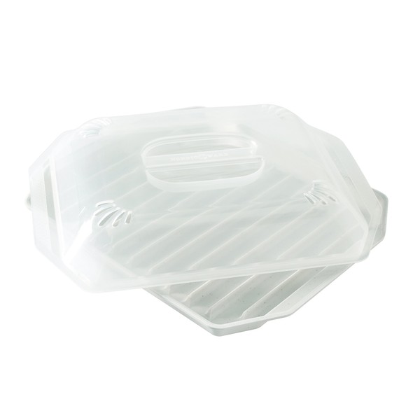 - Specially designed microwavable rack keeps bacon elevated so fat drips off. Lid helps contain spatters.