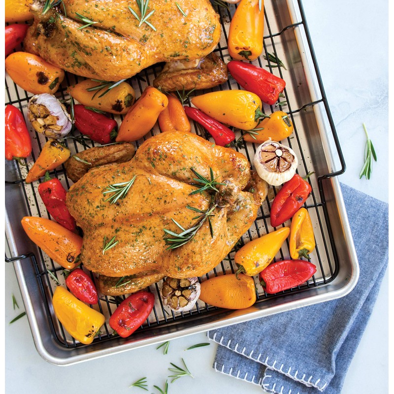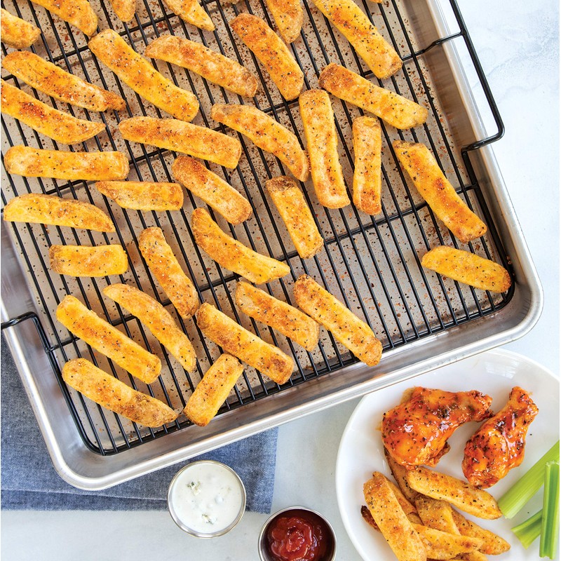 Air crisp in your oven! Roast meats, bacon, fries, tots, homemade jerky, dried fruit and more with our Extra Large Oven Crisp Baking Tray- a larger version of our popular Oven Bacon Pan!