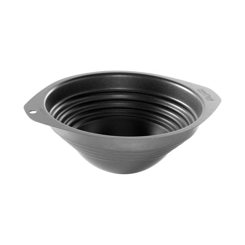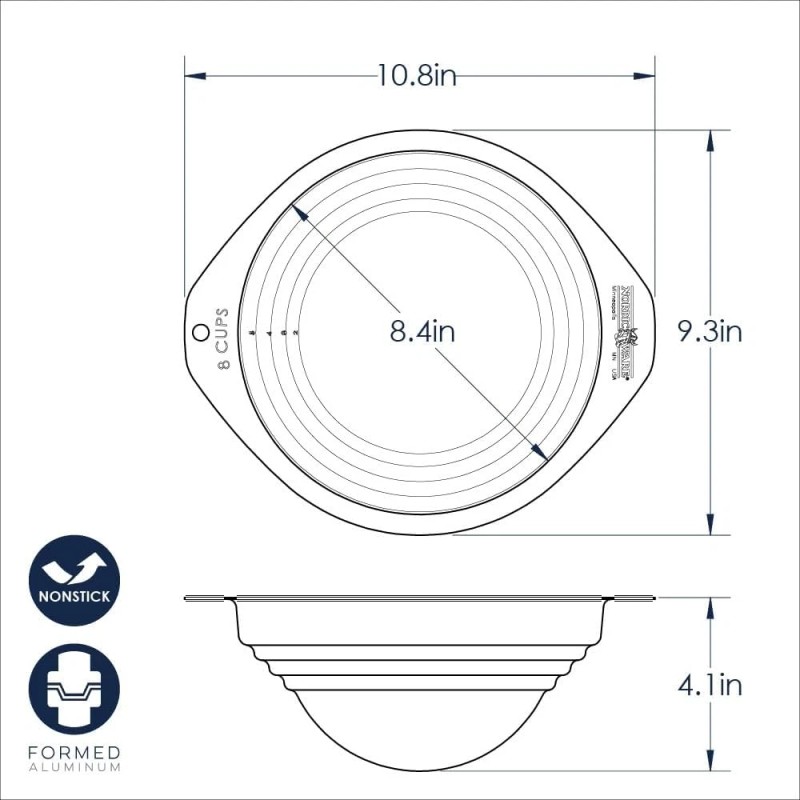 Product Description Fits pot and pans from 6 to 9 inches in diameter (2 to 4 quarts). Made of aluminum with nonstick interior for easy release Designed for gently heating sauces, melting cheese, chocolate or candy coating; boiler has an 8 cup capacity. Proudly made in the USA by Nordic Ware. Cleverly design with a series of concentric grooves, this conical double boiler insert fits any pot or pan that's 6 to 9 inches in diameter or 1 to 4 quarts in capacity. The double boiler itself holds 2 quarts. Designed for gently heating delicate sauces or for melting cheese or chocolate, the boiler is made of aluminum and has a nonstick interior so it easily releases foods and cleans effortlessly. One of its handles has a hole for easy hanging on a pot rack. The double boiler carries a 5-year warranty against defects. --Fred Brack