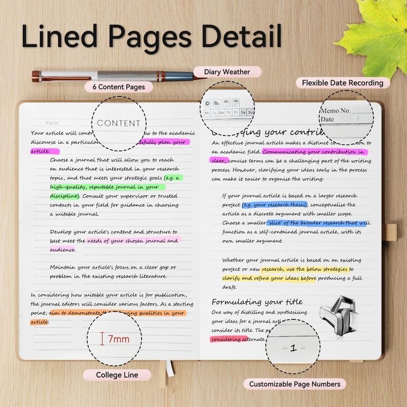 - 【360 Pages/180 Sheets】:This A5 notebook,with a 7mm spacing,is a classic university standard notebook that provides ample writing space for you. Multiple colors to meet your needs in various occasions. Each journal notebook comes with colored index stickers for easy categorization and organization of content.