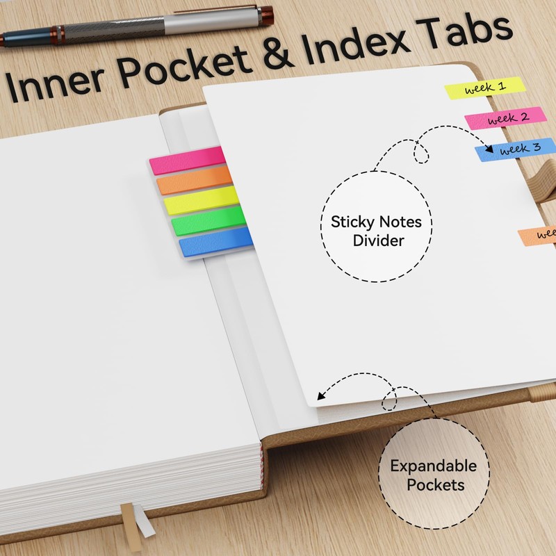 NORDUN Notebook A5 360 Pages,Lined Notebooks with Sticky Notes&Inner Pocket,100gsm Thick Paper Journals Notebook for Women Men Writing School,Office,Travel,14.5 x 21cm - Brown