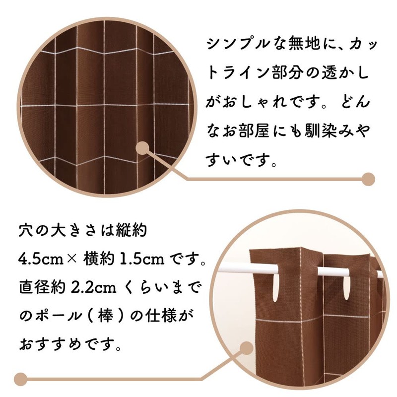 - [Specifications] You can thread the poles (rods) with a diameter of about 1.2 inches (3 cm), but we recommend using poles that are approximately 0.9 inches (2.2 cm). (*When using a tension rod, please consider the thickness of the cap on both ends. Some caps can be removed; Transparency: The bright parts on the other side are completely see-through. (Minor noticeable except the lighting electricity or the shape of a bright window. The dark colors are slightly transparent. Adjustable size. It can be cut with scissors along the cut lines that are spaced between 3.9 inches (10 cm). Be careful not to cut the rod through the rod