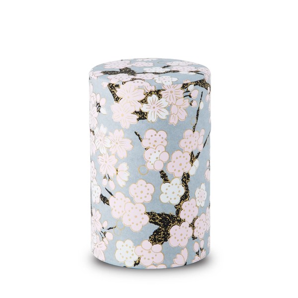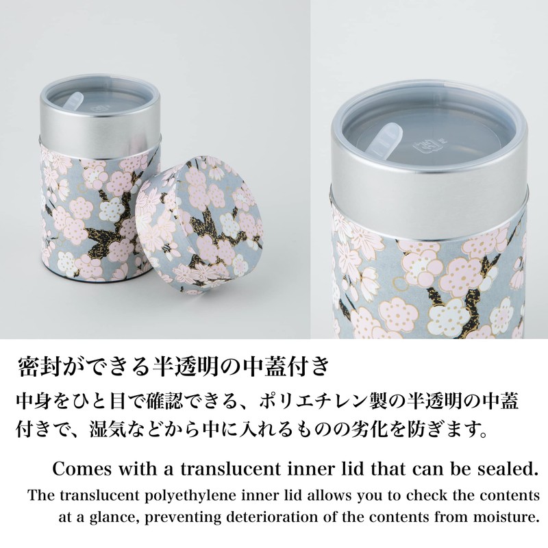NOREN Tea Canister (Yuzen Washi paper), 3.5oz Size, Made in JAPAN, with Includes Inner Lid of Airtight, Damp-Proof, Kitchen Jar for Coffee, Tea, Spice and More (Plum and Sakura/Gray)