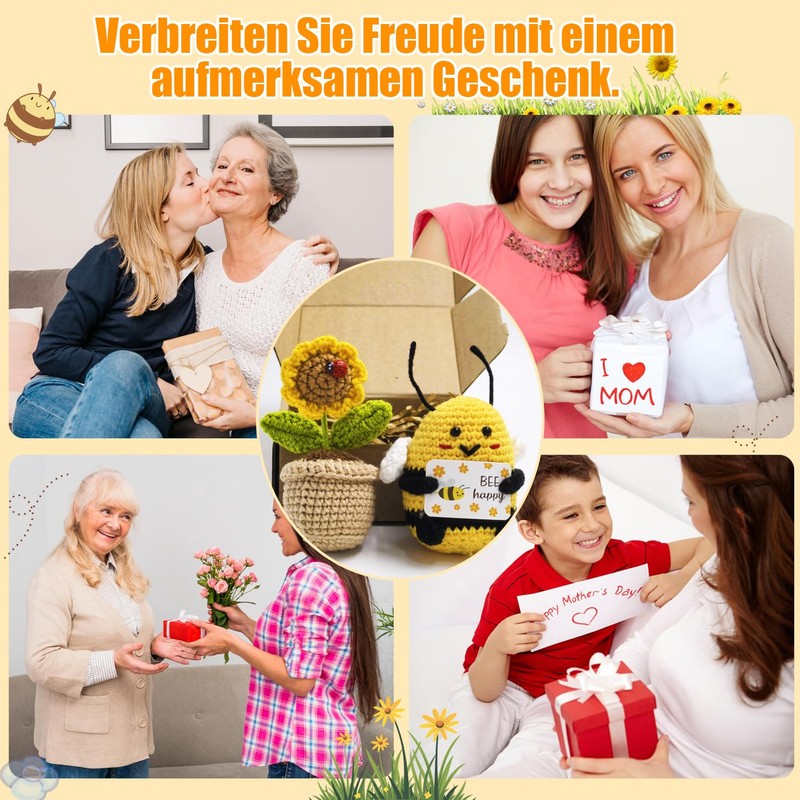 - Produkt enthält: niedliche gestrickte Positive Geschenke Biene (11*7.3cm), schlüsselanhänger (30mm) und Hübsche gestrickte Sonnenblume (10.5*5.3cm). Glück Biene sind handgenäht und unterscheiden sich leicht voneinander