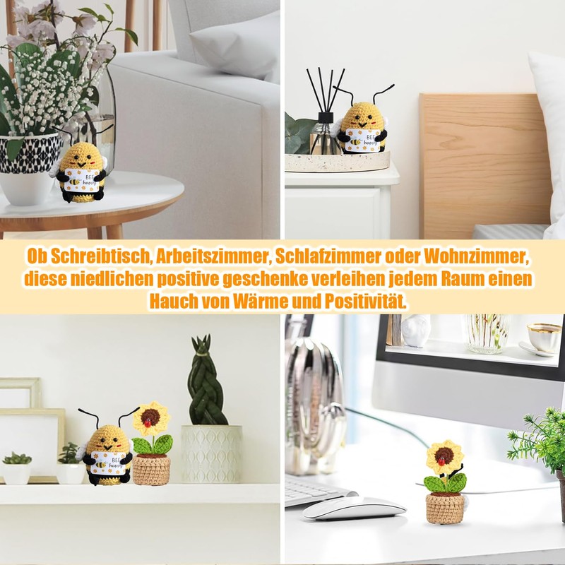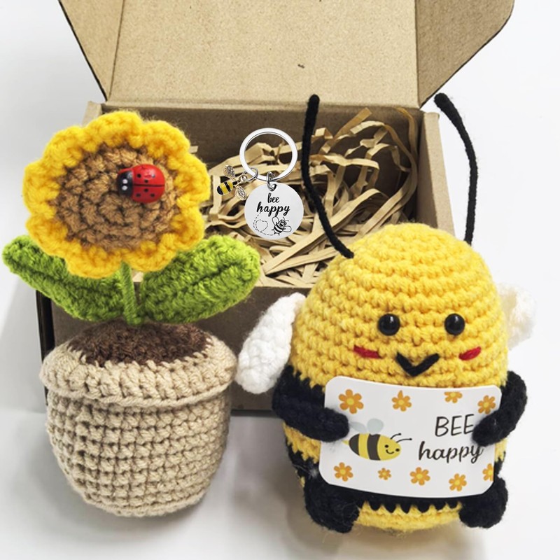 - Produkt enthält: niedliche gestrickte Positive Geschenke Biene (11*7.3cm), schlüsselanhänger (30mm) und Hübsche gestrickte Sonnenblume (10.5*5.3cm). Glück Biene sind handgenäht und unterscheiden sich leicht voneinander