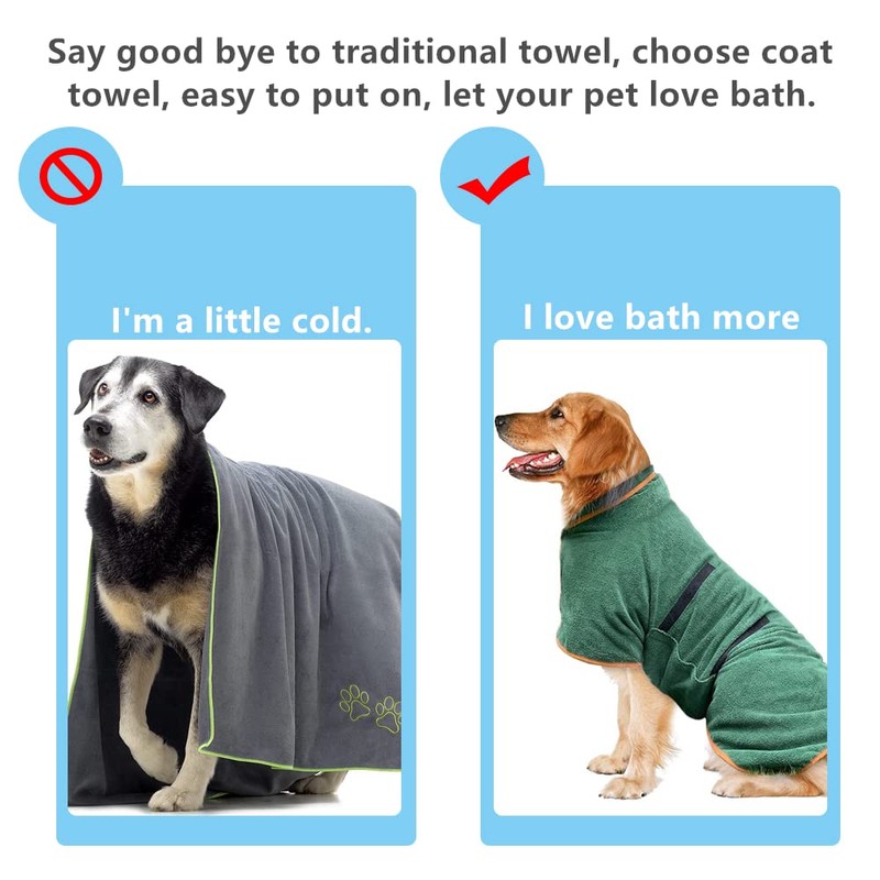 Dog bathrobe help you save more time to take care of your pet after taking a bath, shower or a walk on rainy days.
