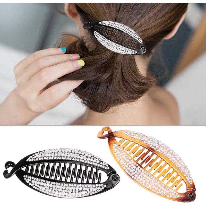 Norhogo Fish Shaped Plastic Hair Clip, Crystal Fish Shaped Banana Hair Clips with Rhinestones for Women, Set of 2