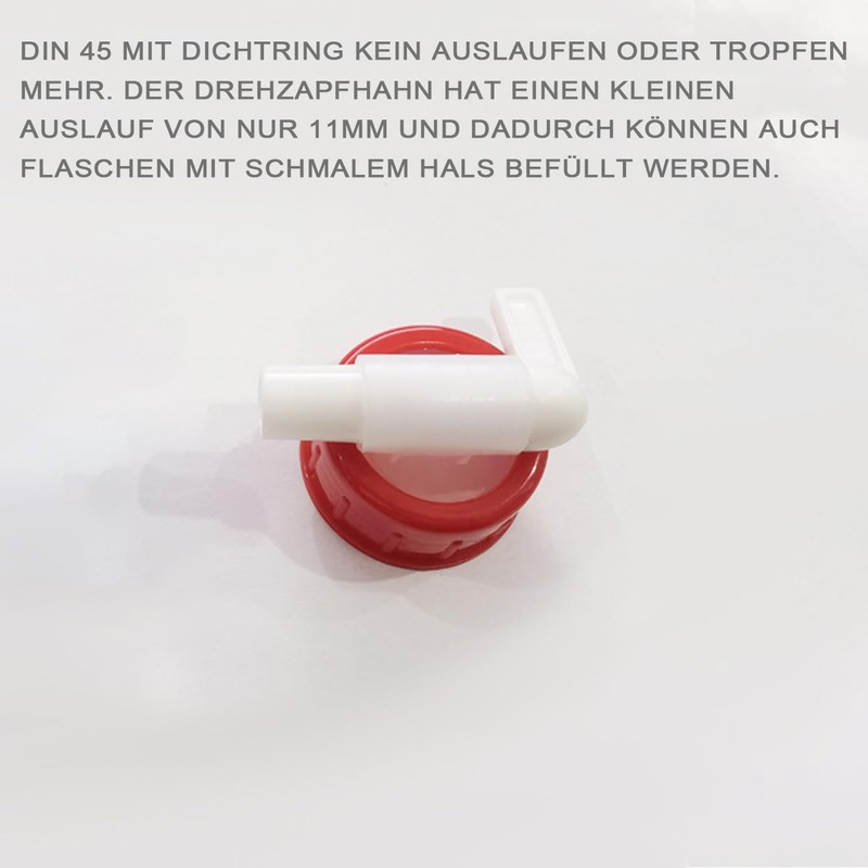 - Installation is straightforward. DIN 45 with sealing ring, no more leaks or drips. The rotary tap has a small spout of only 11 mm and therefore bottles with a narrow neck can also be filled