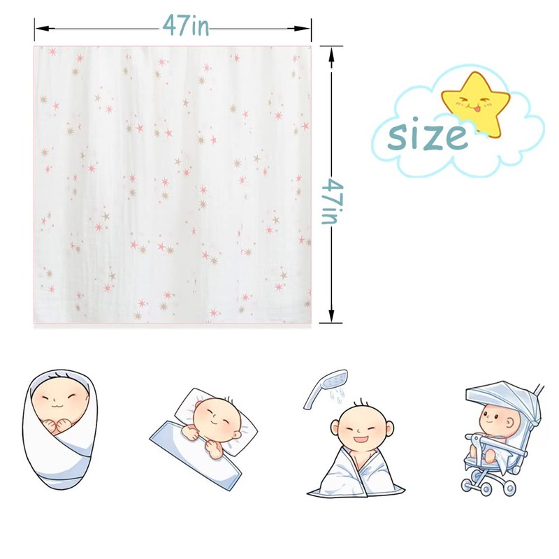 - 【MULTIPLE USAGE】- Our swaddle blanket can be used as a swaddle blanket, nursing cover,burp cloth,pram covers,receiving blanket,etc.