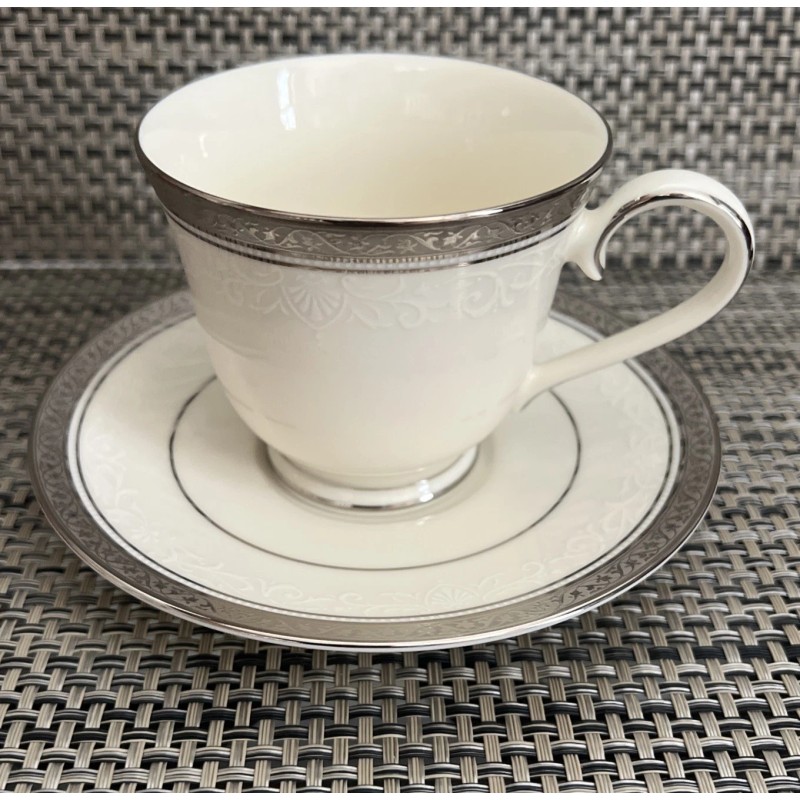 Noritake Ardmore Platinum 7601 Footed Cup and Saucer Set Retired New