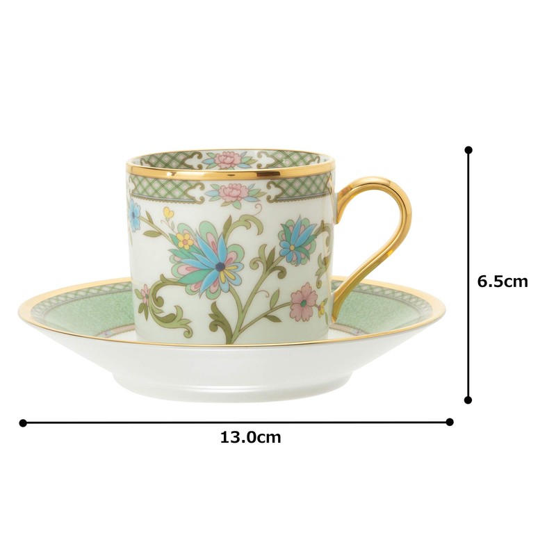 - Size: Cup: Diameter: Approx. 2.4 inches (6.2 cm), Long Diameter (including handle) Approx. 3.3 inches (8.5 cm), Height: Approx. 2.4 inches (6.1 cm), Capacity: 4.9 fl oz (125 cc) (full water); Saucer: Diameter: Approx. 5.0 inches (12.9 cm), Height: Approx. 0.9 inches (2.3 cm)