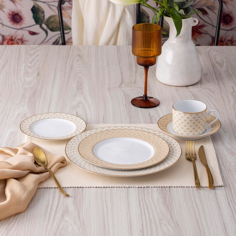 - Includes: 1 Each Dinner Plate,Salad/Dessert Plate,Bread & Butter Plate, Cup & Saucer