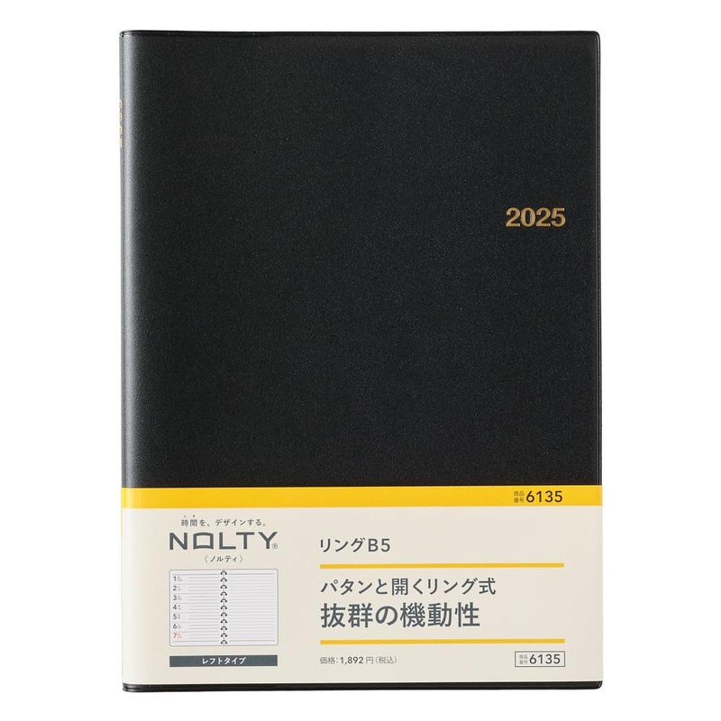 Noritsu NOLTY Notebook, 2025 B5 Weekly Ring, Black, 6135 (Begins December 2024)