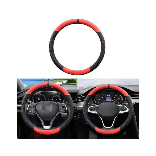 - High Quality Material: This car steering wheel cover is made from microfiber leather, combining the smooth texture of genuine leather with exceptional durability. The surface features a carbon fiber texture, offering a soft and comfortable feel, and boasts excellent abrasion resistance. It remains resistant to wear and tear during daily use, maintaining its pristine appearance even after prolonged use, thereby enhancing driving comfort.
