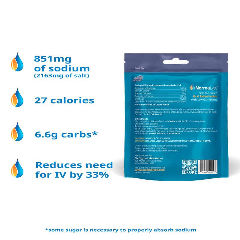 NormaLyte NormaLyte Oral Rehydration Salts Helps dietary management of POTS Syndrome symptoms- 1 Pouches -30 Sticks (Yields 500mL per Pack)-Grapes| Energy Supplements, Potassium Supplement, Dehydration Recovery