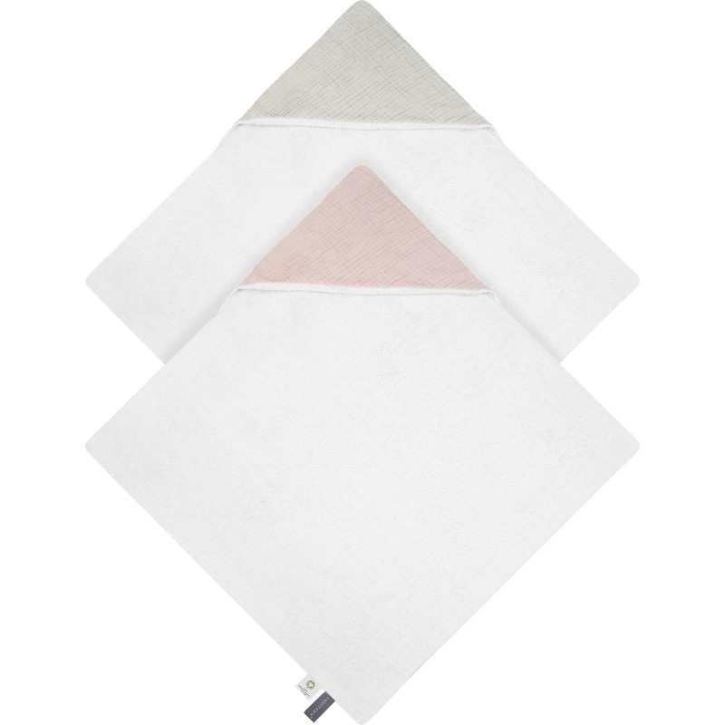 normani Baby Hooded Towel Made of Muslin Terry Towelling Wrap Hooded Towel Made of 100% Organic Cotton in 75 x 75 cm - Bath Towel for Small Children Colour Light Grey/Pink