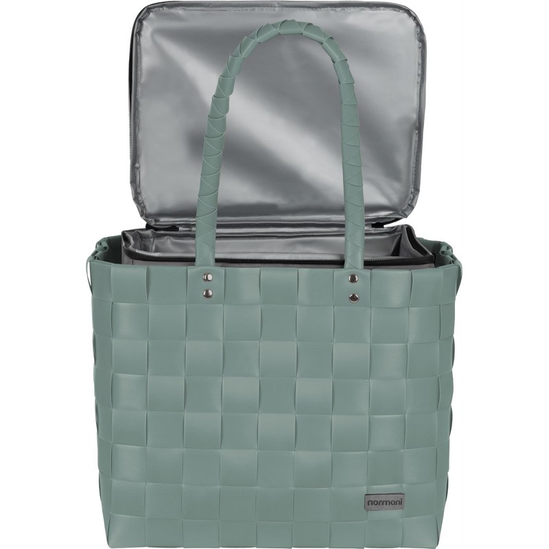 normani Shopping Basket Shopping Bag with Wicker Basket 20 Litre Volume - Picnic Bag with Cooling Function Colour Mint Size Small Cool Bag