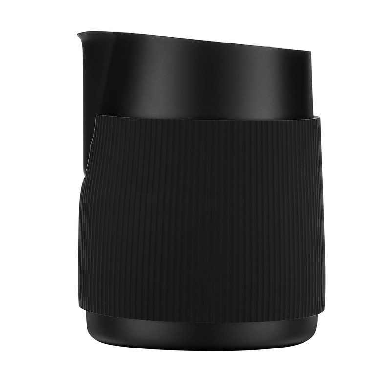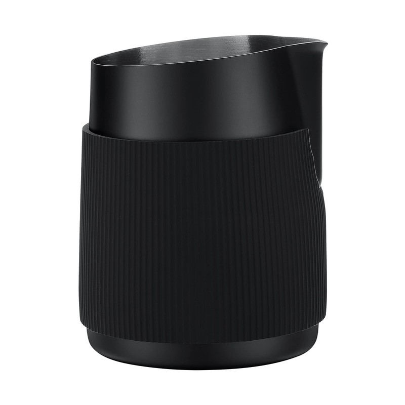- HEAT-RESISTANT GRIP - Our milk frothing pitcher feels secure and balanced in your hand thanks to the silicone heat-resistant grip. The ability to hold the milk jug any way, without the restriction of a handle.