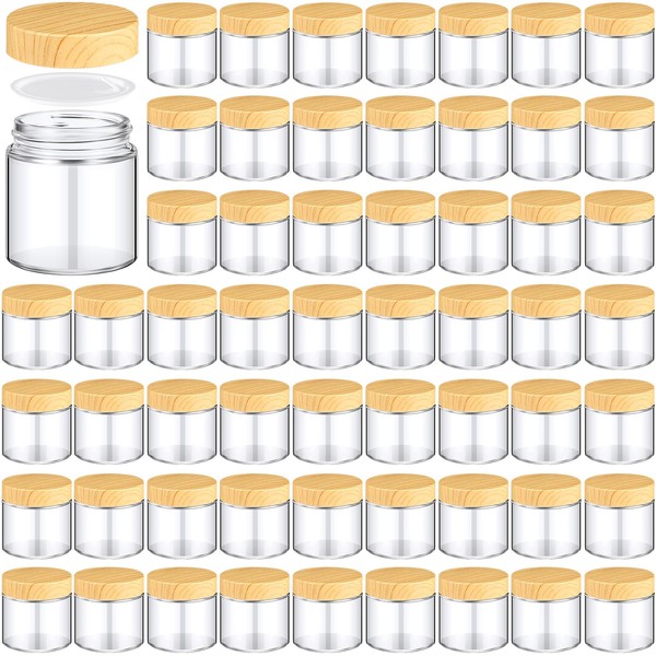Norme 96 Pcs Glass Jars with Lids Empty Small Glass Containers and Inner Liners Reusable Cosmetic Jars Round Airtight Bottles with Plastic Woodgrain Lids for Travel (4oz)