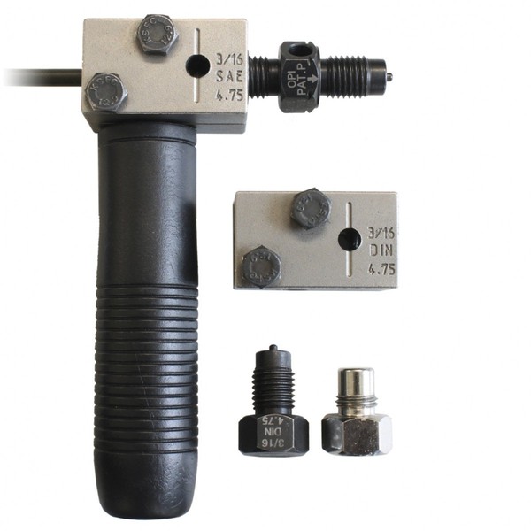 DIN CONVEX 4.75 mm flaring SAE CONVEX 3/16 inch flaring Easy and fast, directly on the vehicle. Particularly compact, especially suitable for tight areas. With adjustment screw for invisible area inclusion. Instruction manual