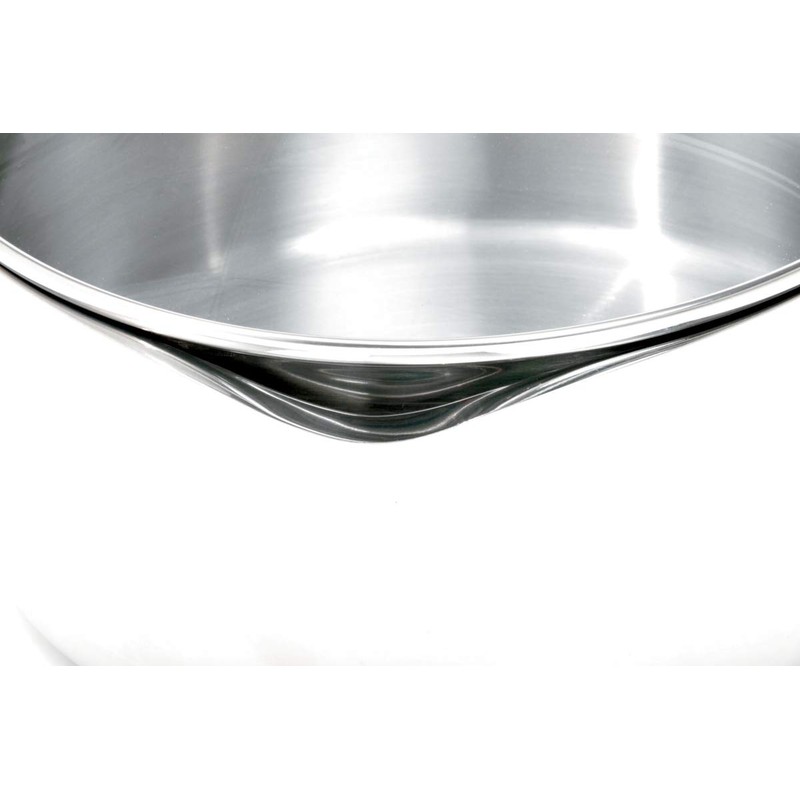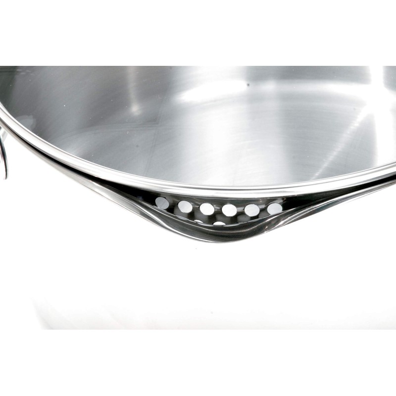 • Has a Tri-Ply encapsulated base that incorporates 2 layers of stainless steel with an aluminum core layer. This Solid construction ensures: increased heat conductivity, even heat distribution, increased cooking efficiency, protection from hot spots and burning and reliable durability.
