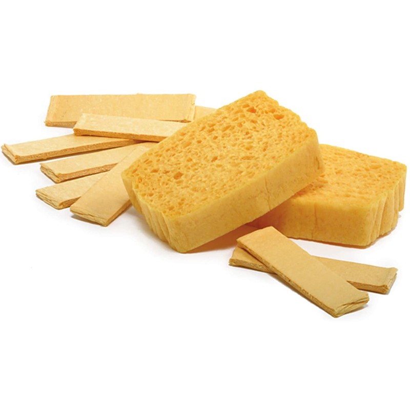 - Compressed to a flat, thin rectangle, these sponges save you space when storing prior to use! Immersed in water, each sponge expands to full size, highly absorbent and gentle on cookware and fine tableware.