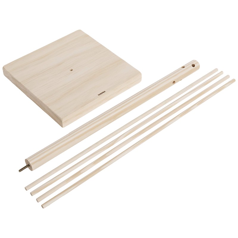 - The wooden rack stands 16 ½ inches tall, including a heavy, stable 7/8 inch thick base. Then equipped with 4 – 18 inch dowels that slide through the holes in the post, creating 8 arms that are perfectly angled so they don’t interfere with each other while drying pasta. Even the longest fettucine won’t touch the counter!