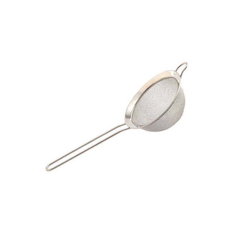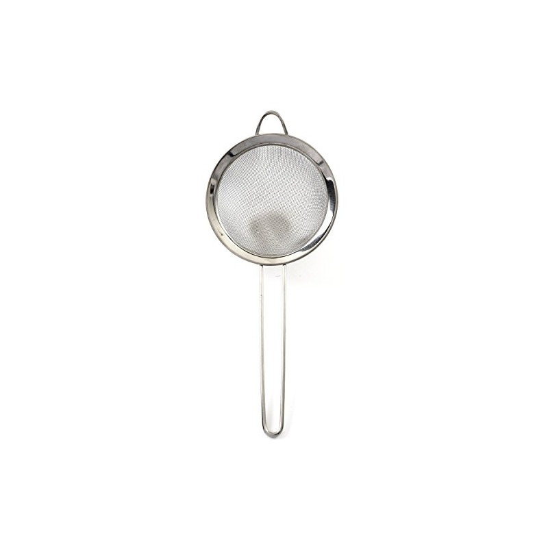 Measures: 9.75" x 4" x 1.75" / 25cm x 10cm x 4.5cmMesh screen strainers are perfect for straining out unwanted liquid and excess moisture. Rinse rice, wash herbs, vegetables and berries. Strain sauces and purees. Removing vegetable fibers from gazpacho. Sift flour and powdered sugar. Remove bran from wheat flour. Features a long handle and a resting ring designed to fit over a variety of pots and bowls. Stainless steel construction. Norpro was founded in 1973 with a vision to design, manufacture, and supply the highest caliber kitchenware. Norpros offering of innovative, high quality product for cooking, preparing and serving food are produced with superior materials and craftsmanship.