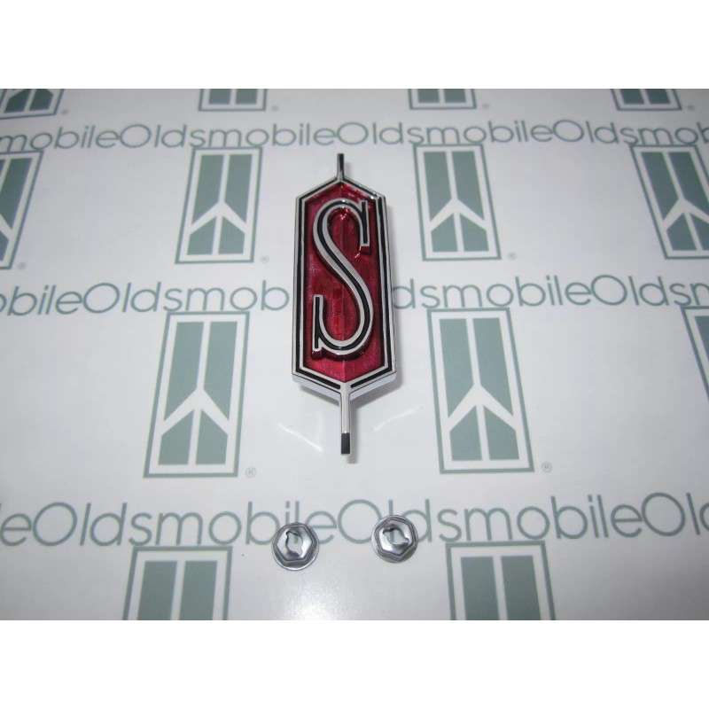 NORS 1968 Olds Cutlass "S" Hood Emblem with Hardware | Claret Poly Maroon