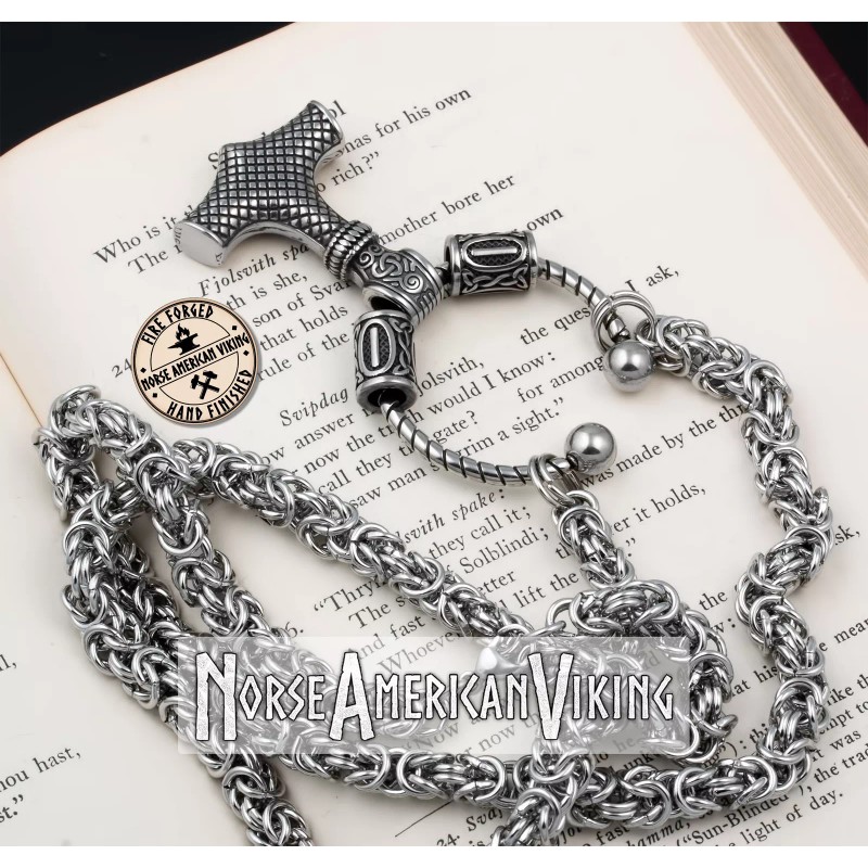 Norse American Viking Viking Mjolnir Thor's Hammer King Rune Byzantine Necklace 316L Stainless Steel