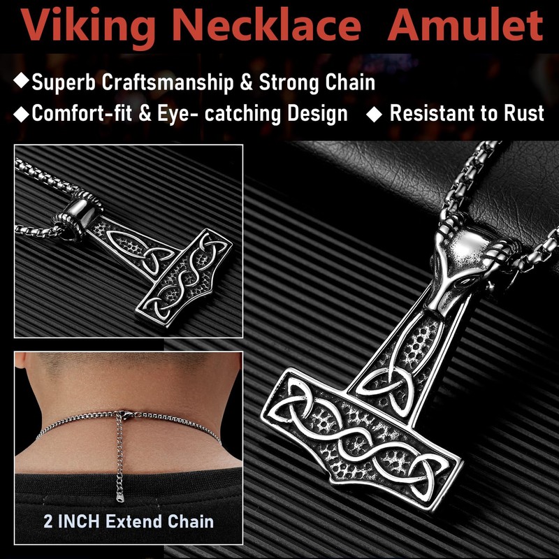 - ⚓ Thor's Hammer Necklace: Thor's Viking hammer, often referred to as Mjollnir or Mjolnir, is one of the most powerful Norse symbols. Thor's Hammer necklace brings good luck and neutralizes bad energies or curses. Give you the courage to face your fears and the strength to overcome difficulties
