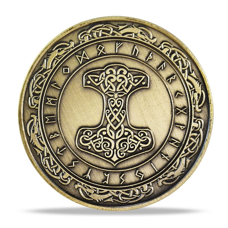 - Double side same design Nordic Mythology Norse symbol Coin: Valknut(Knot of The Slain Warrior), Yggdrasil(Tree of Life), Mjolnir Vegvisir(Viking Compass), aegishjalmur(The Helm of Awe).