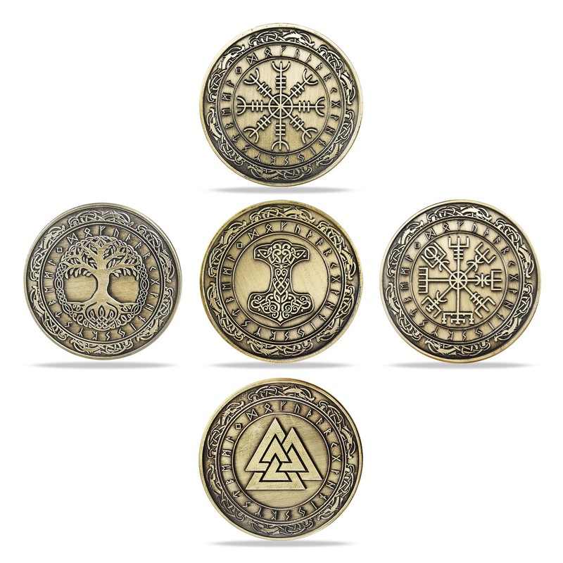 Norse Viking Symbol Coin Nordic Mythology Proective Talisman, Set of 5