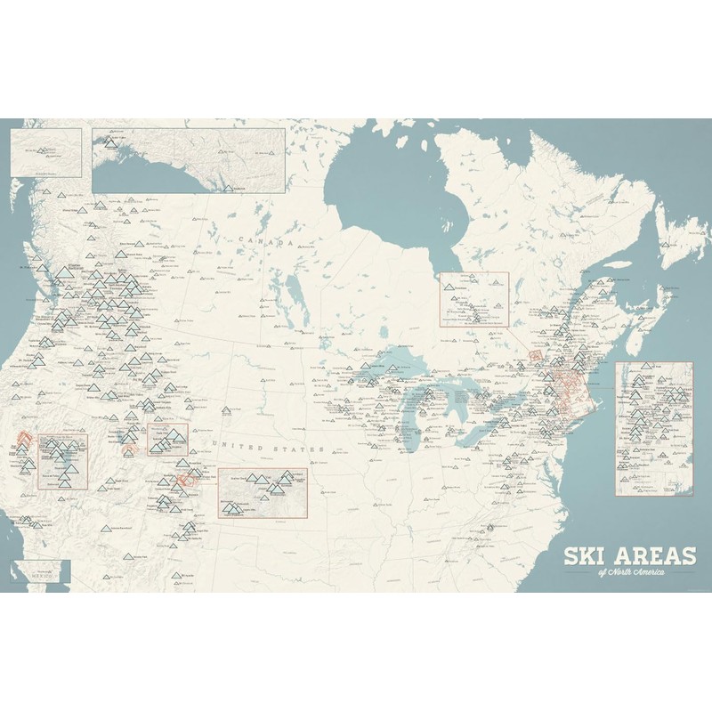 North America Ski Resorts Map 24x36 Poster (Beige & Opal Blue)