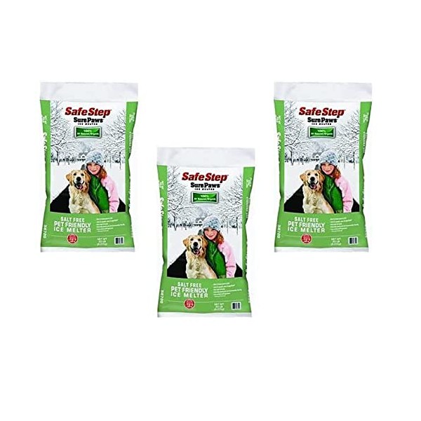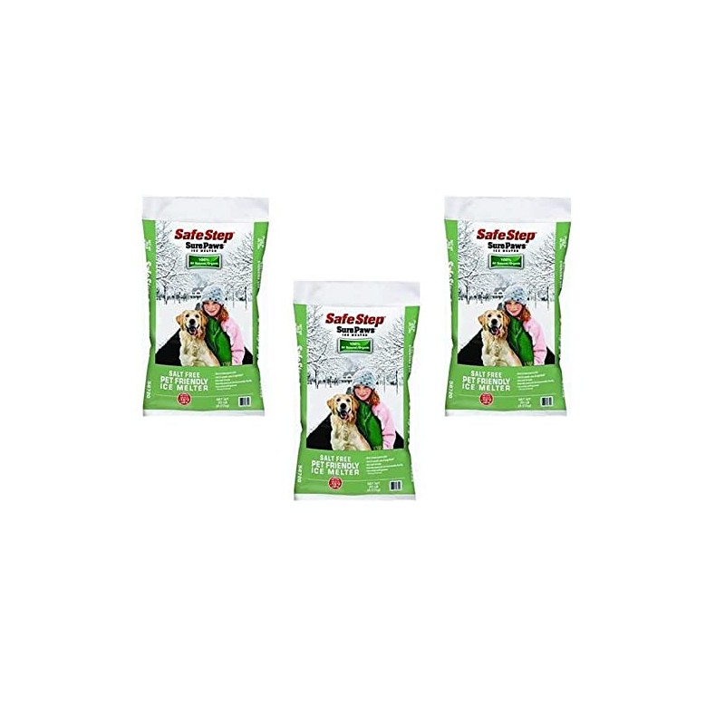 Safe Step 56720 Sure Paws Ice Melter is 100% natural organic and safe for pets' paws and skin. Does not kill grass or vegetation. Fast acting melt melts up to 15 degrees Fahrenheit. The melter comes in an easy-to-pour pitcher. Does not leave powdery residue. Use on sidewalks, patios and driveways.