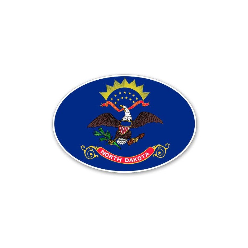 North Dakota State Flag Oval - Vinyl Sticker Waterproof Decal