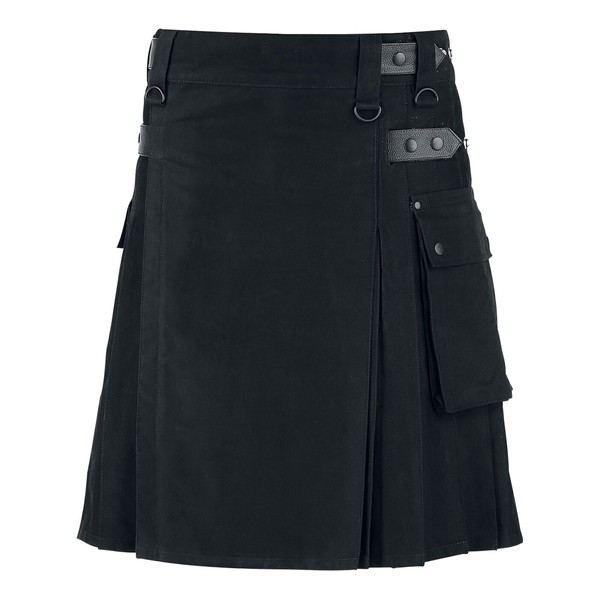 NORTH EDGE Men's Scottish Black Utility Cotton Kilt Fashion Sport Black Utility Skirt Two Cargo Pockets with Adjustable Leather Straps (30, Black)