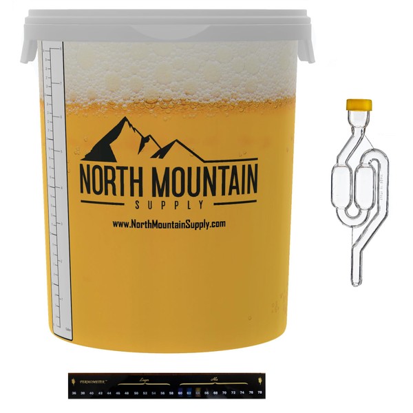 - North Mountain Supply 8 Gallon Graduated Fermenting Bucket with Twin Bubble Airlock, Grommet & Thermometer