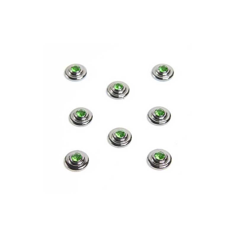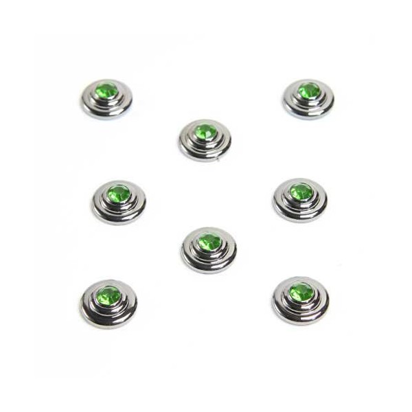 The metal domed body is centered with crystal-simulating resin. When the light hits it, it sparkles and shines.