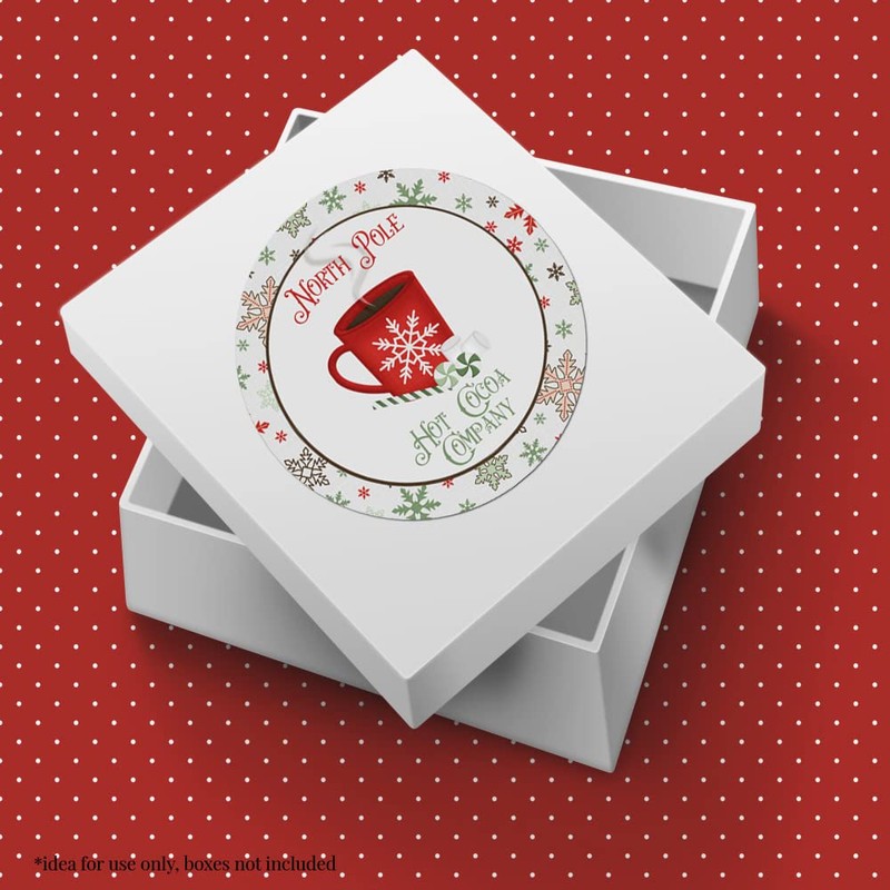 - Awesome Quality: Forget smaller, chintzier labels printed on flimsy paper. At 2 inches your North Pole Hot Cocoa Stickers are bigger & sturdier than most. Plus, they're printed on 60# stock for ultra-quality.