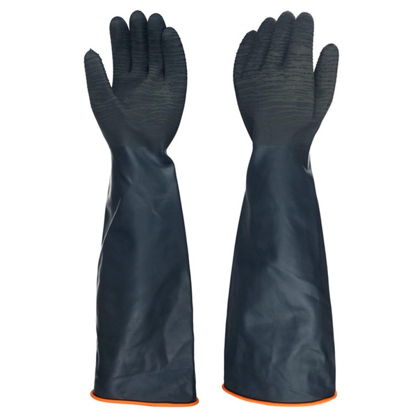 North Tower Heavy Duty Rubber Gloves, Industrial Gloves Waterproof Reusable Protective Work for Cleaning, Dishwashing, Upgraded with Non-Slip Design, Black(22in,1pair)