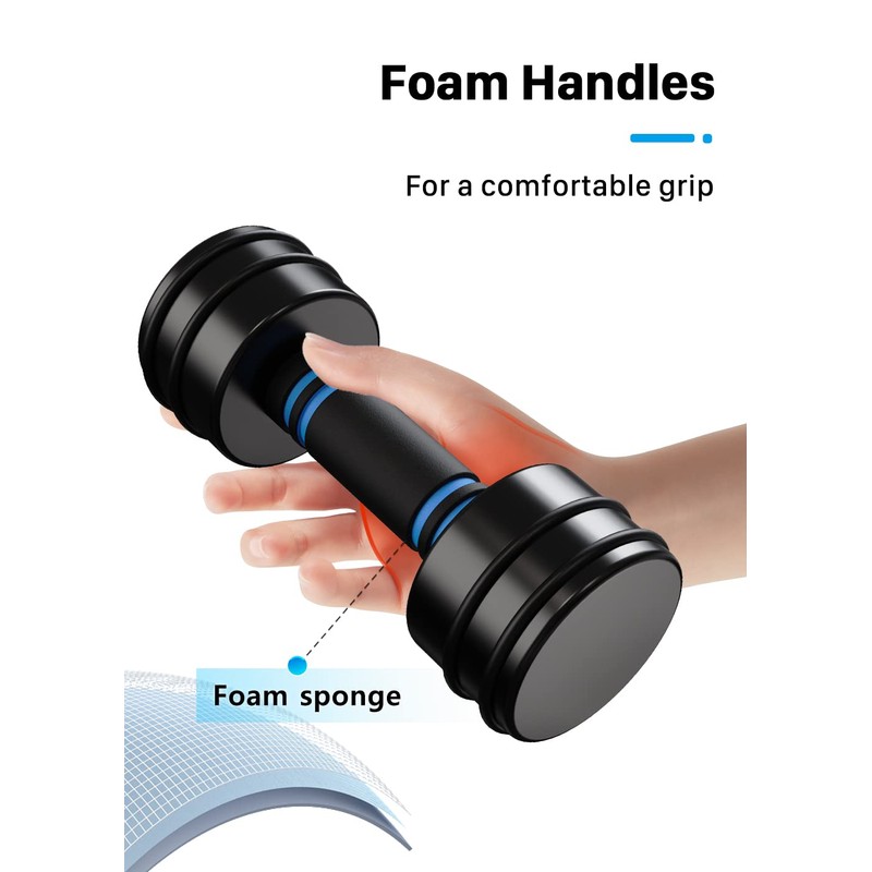 - SAFE & FIRM DESIGN: The dumbbell is precisely cut from a single piece of high-quality steel without any welding. Each dumbbell piece is locked to the next, avoiding the problems of traditional dumbbells in which the dumbbell piece shakes due to a loose nut. The handle is made of a foam material which is safe, non-slip, does not hurt your hands, reduces hand pain caused by heavy weight, and allows you to persist in completing the training.