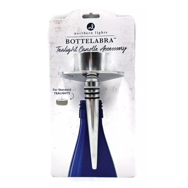 Northern Lights Bottelabra Silver Wine Bottle Tealight Candle Holder NEW