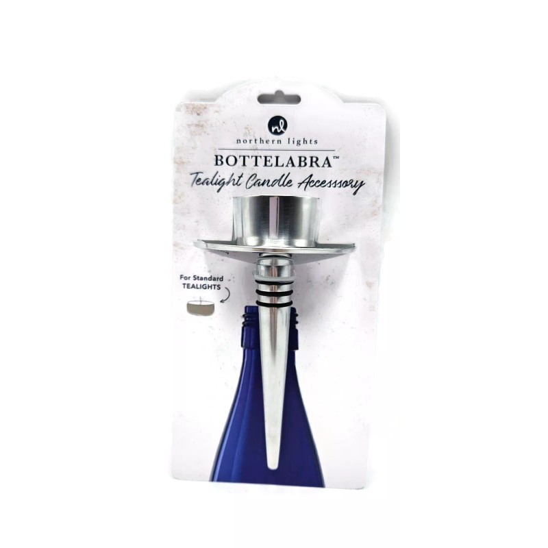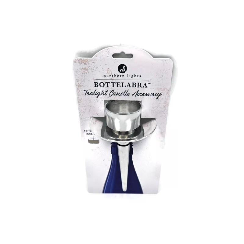 Northern Lights Bottelabra Silver Wine Bottle Tealight Candle Holder NEW